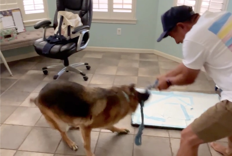 シェパードと格闘!